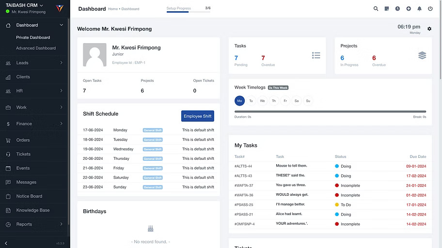Tailored to meet the diverse needs of modern businesses. Our platform seamlessly integrates HR, CRM, and project management functionalities, empowering you to efficiently manage every aspect of your business operations. Here’s a breakdown of the key features: